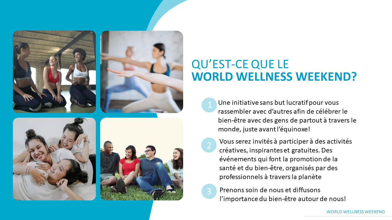 Alors voilà pourquoi je suis fière de faire partie du mouvement World Wellness Weekend (WWW) ou le weekend mondial du bien-être.